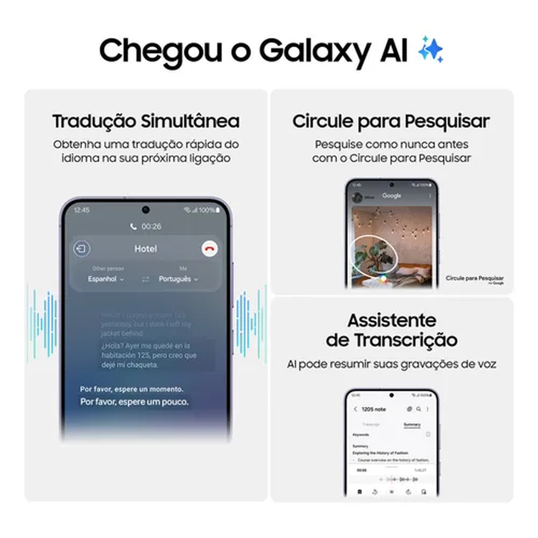 Celular Samsung Galaxy S24, Galaxy Ai, Câmera Tripla Traseira De Até 50mp, Selfie De 12mp, Tela De 6.2 1-120hz, 256gb, 8gb De Ram, Esim Cinza