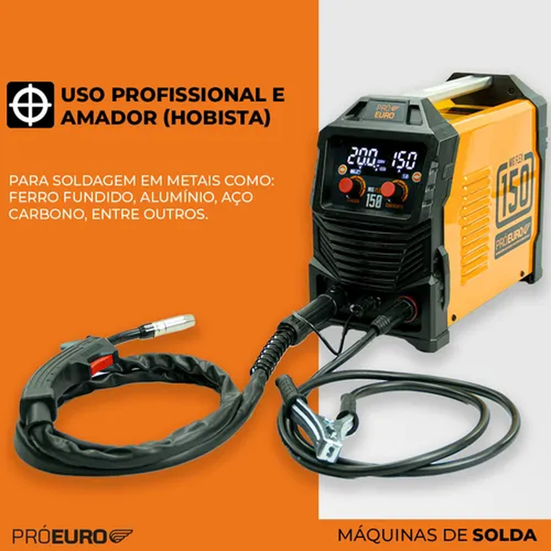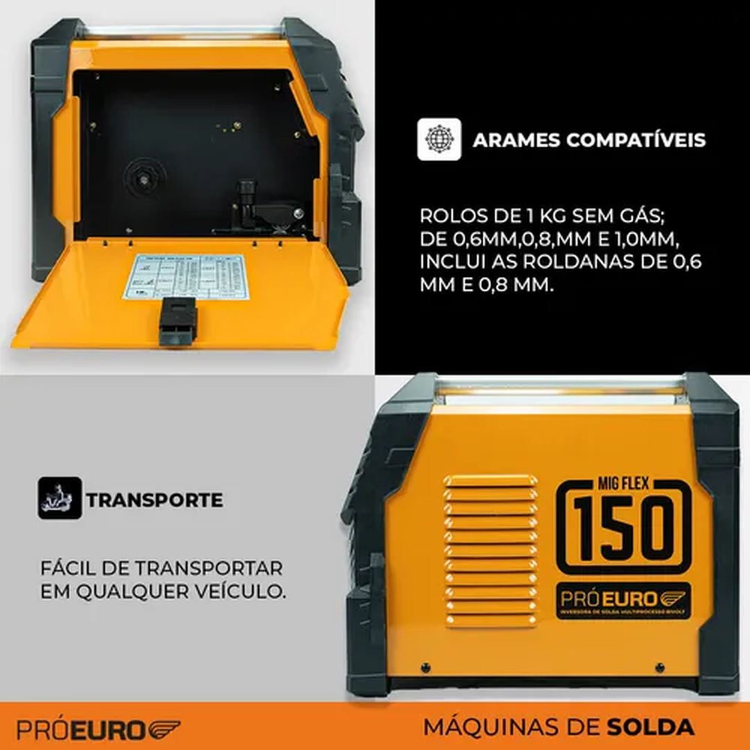 Máquina de Solda Multiprocesso MIG Flex 150a Pró Euro Bivolt MIG sem gás MMA TIG 60Hz